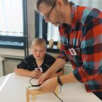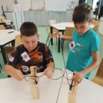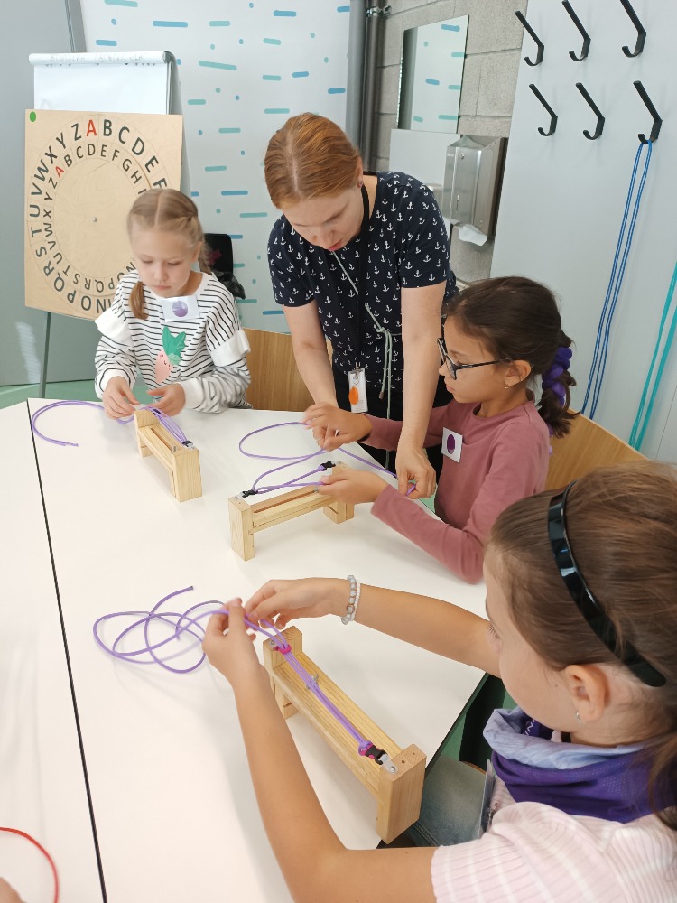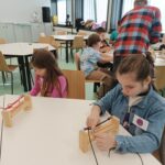 si za vedení lektorky Mirky vytvořili náramek přežití na speciálním dřevěném stavu.