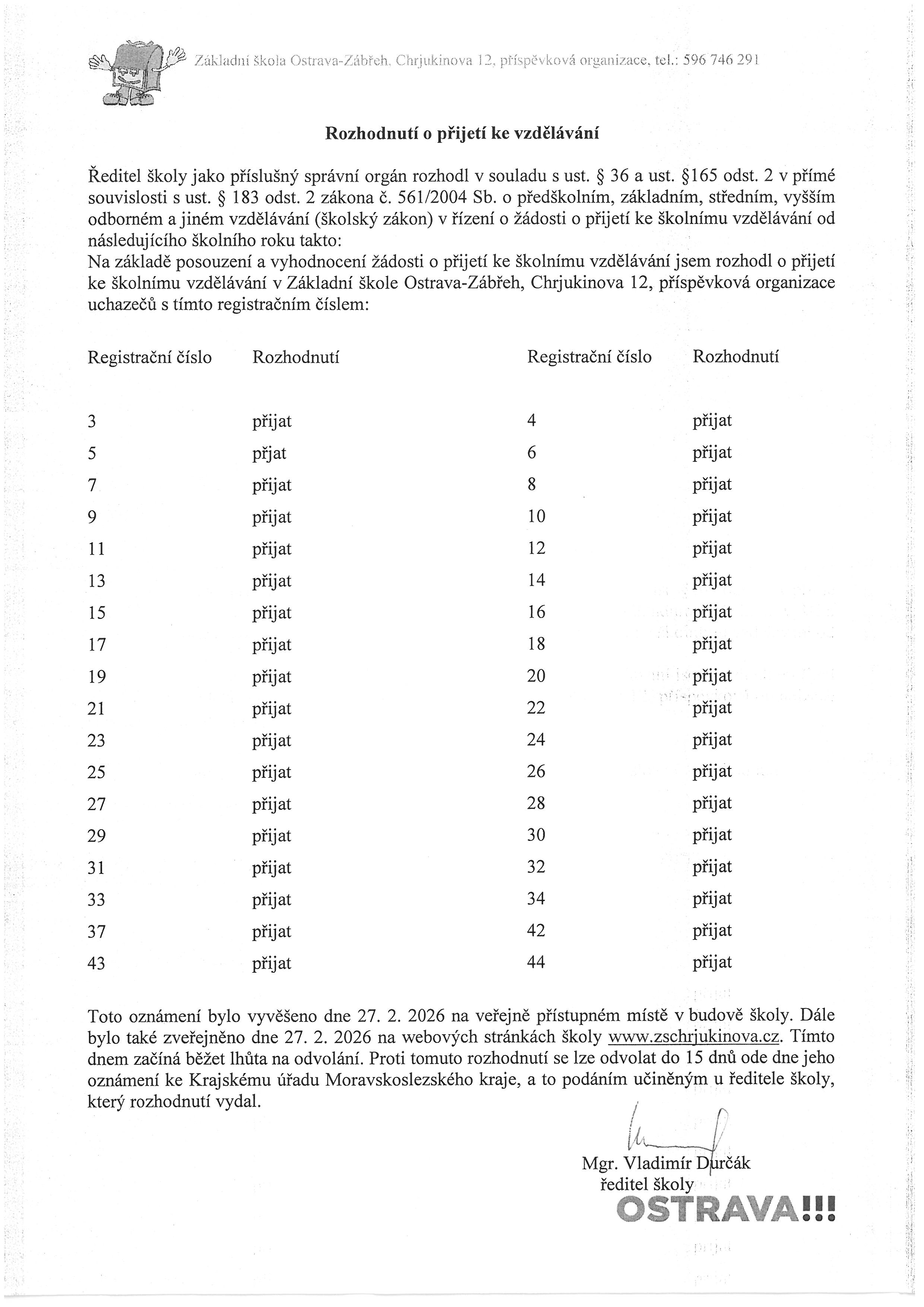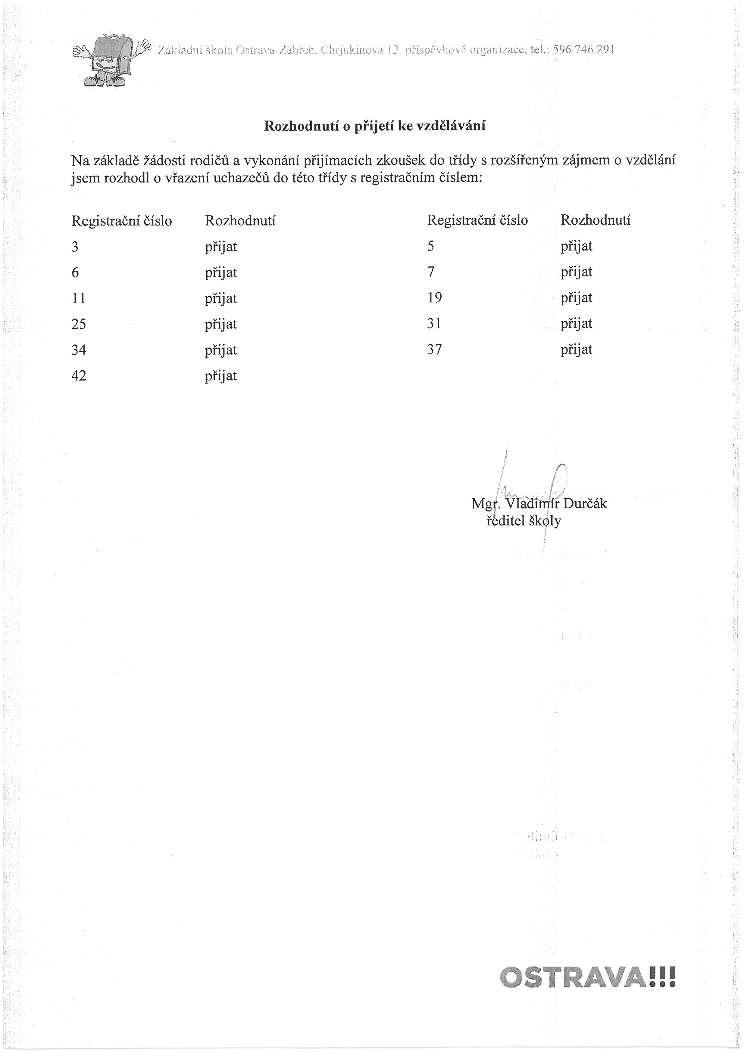 Leták k zápisu