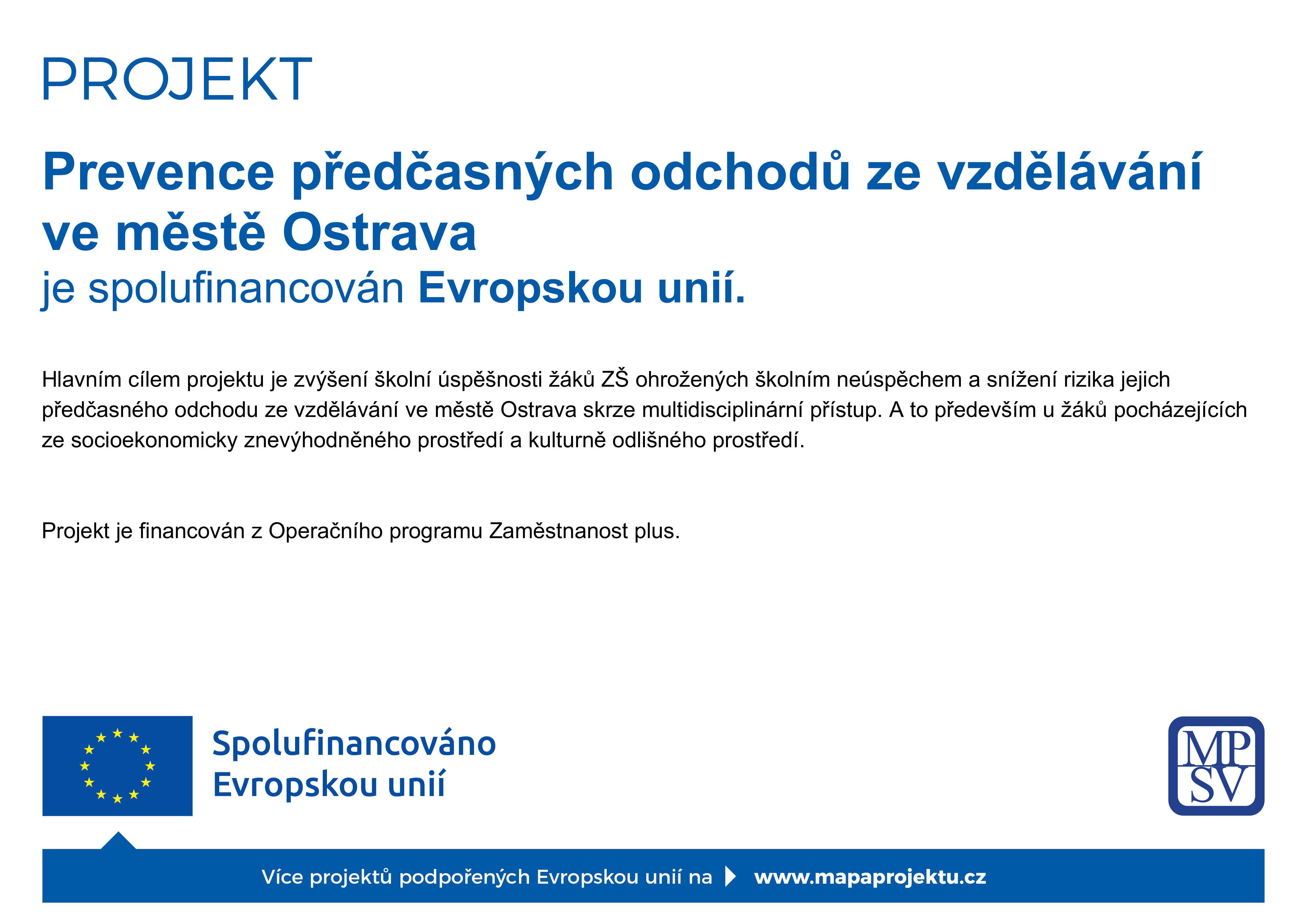 - ,,Prevence předčasných odchodů ze vzdělávání ve městě Ostrava ‘‘ – z tohoto projektu je hrazen terénní pracovník.